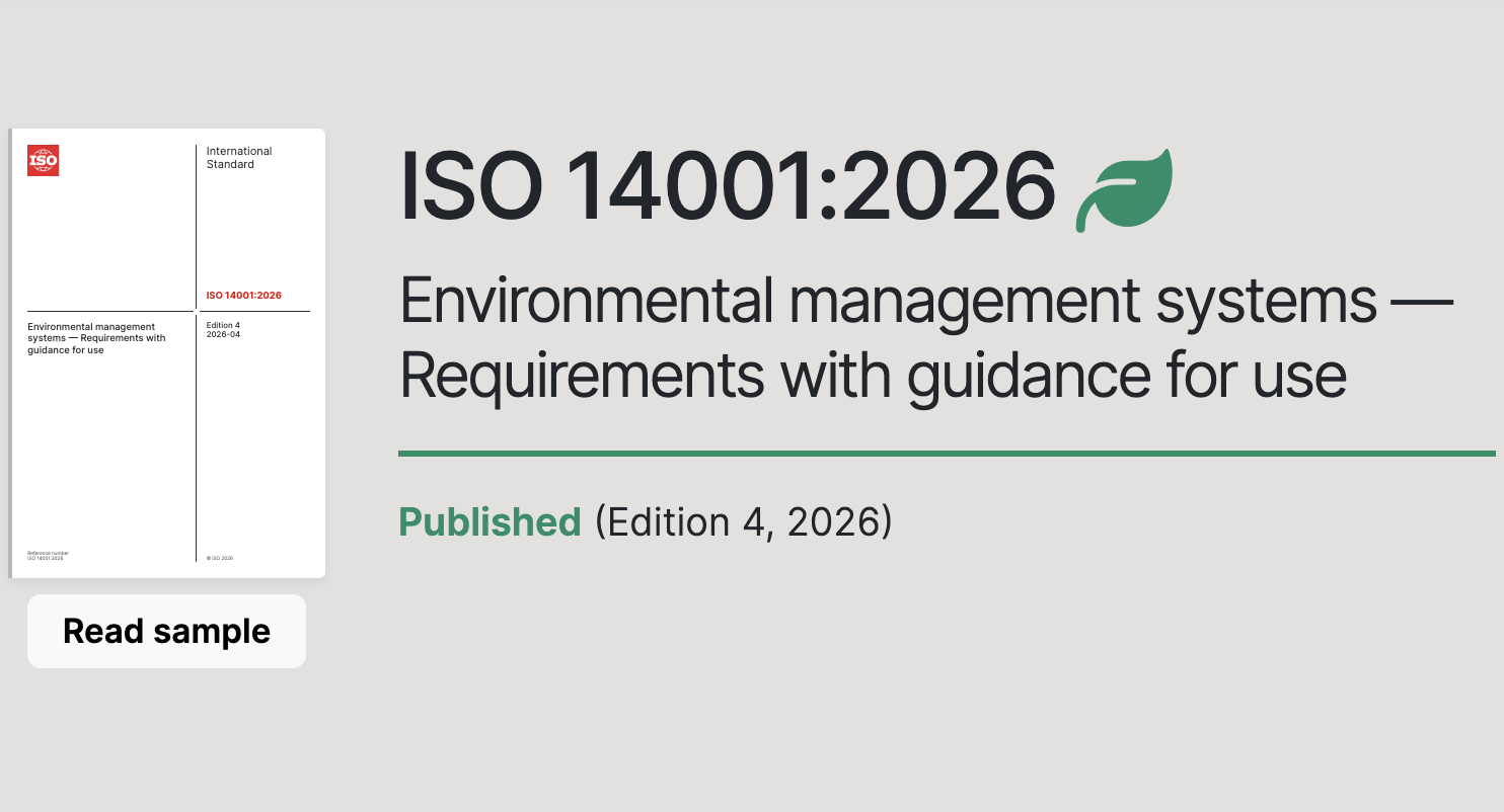 ISO 14001, one of the most widely used environmental management standards of ISO, has been updated to ISO 14001:2026 as of April 2026.